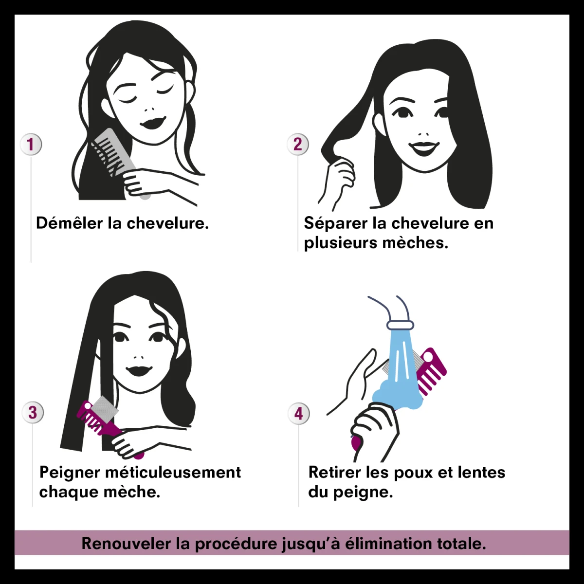 - Utilisation après un traitement conventionnel : pour retirer les lentes mortes solidement fixées aux cheveux