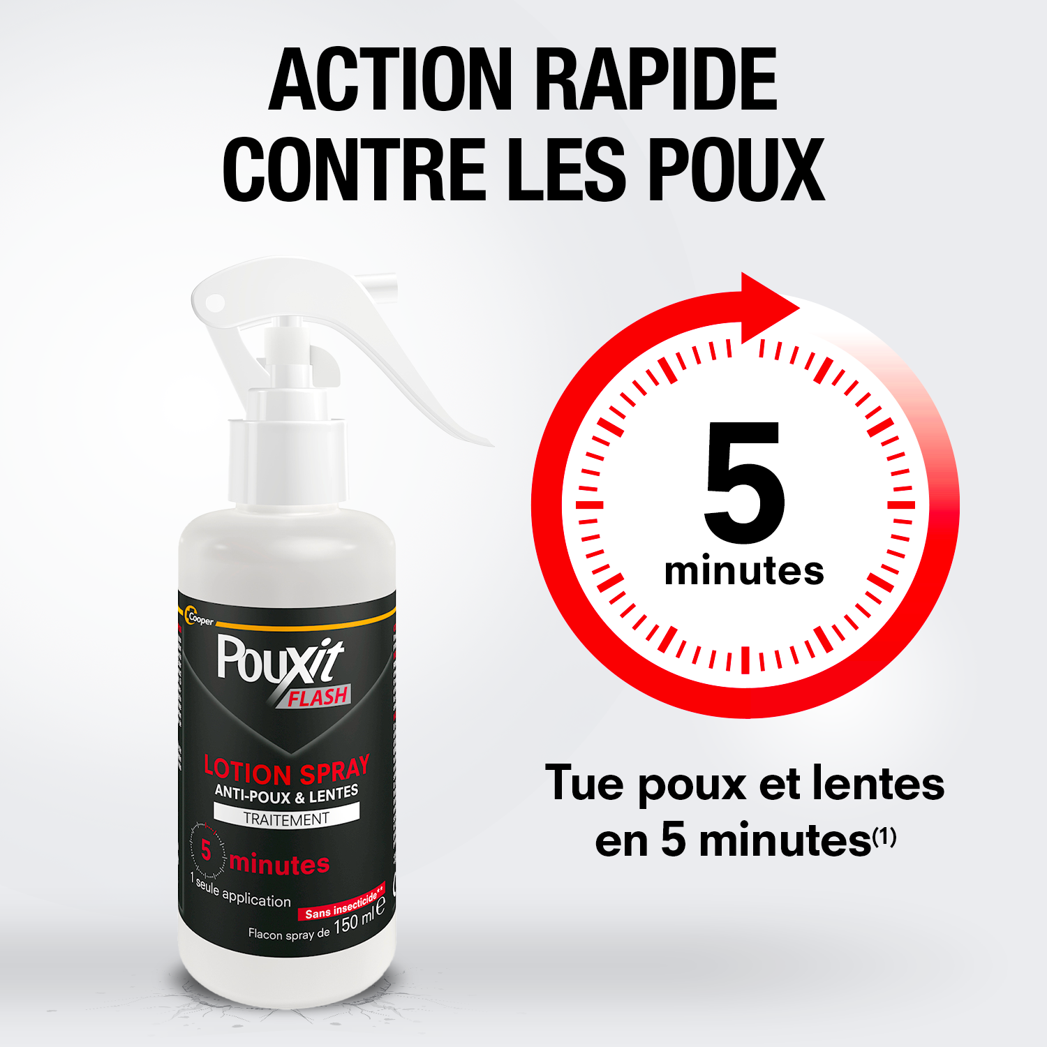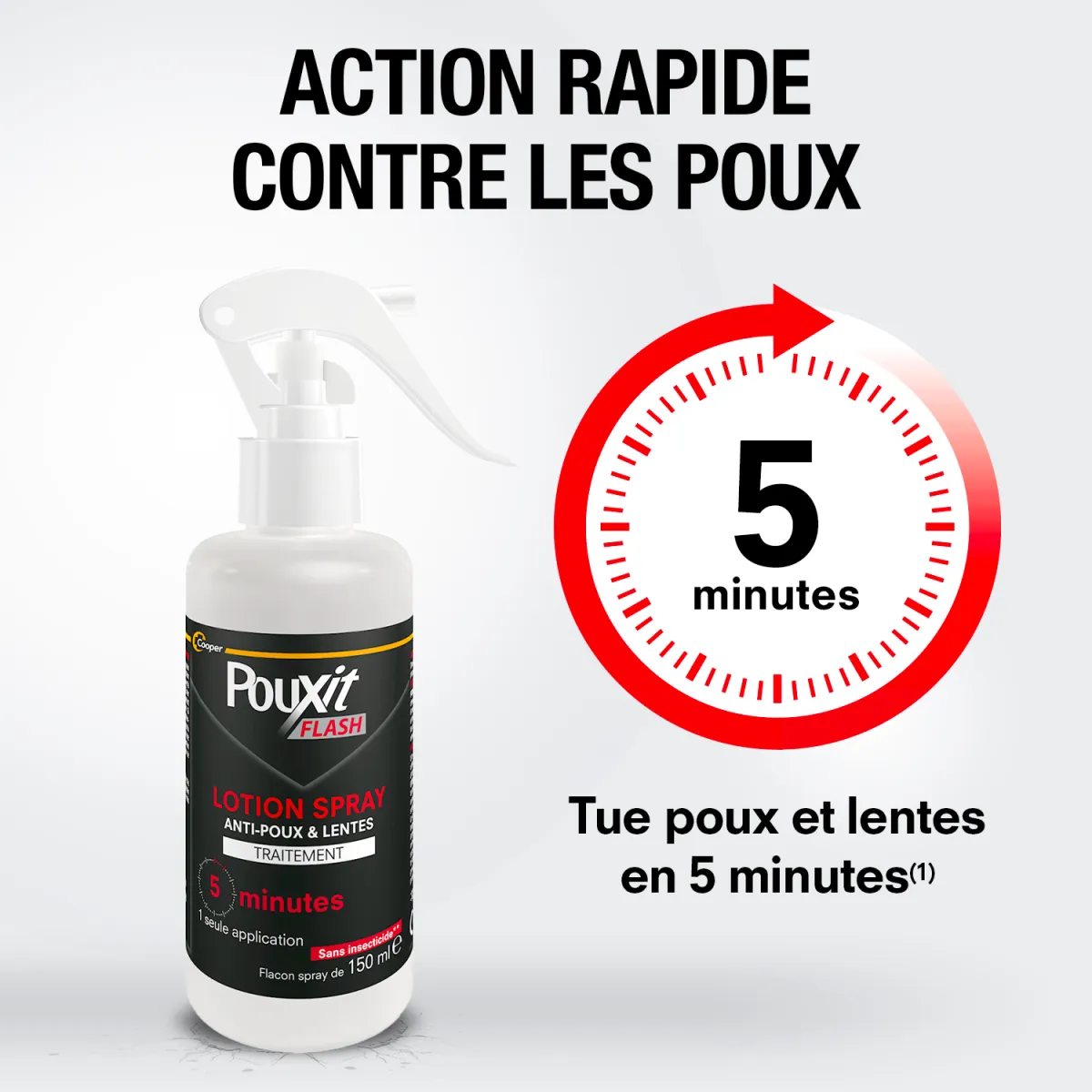 Grâce à son action rapide, Pouxit Flash ne nécessite que 5 minutes de pose pour éliminer poux et lentes**. Avec son peigne inclus, vous pouvez ensuite retirer facilement les poux et lentes morts.