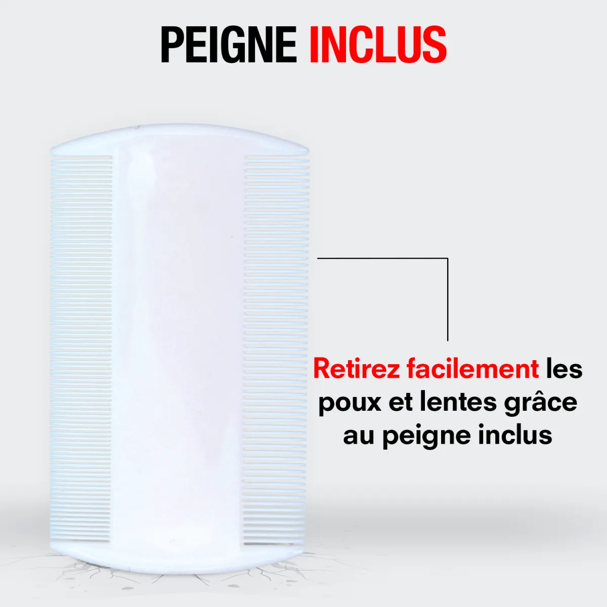 Le traitement peut être réalisé sans peigne. Néanmoins, afin de faciliter le retrait des poux et lentes, il est conseillé d’utiliser le peigne inclus.